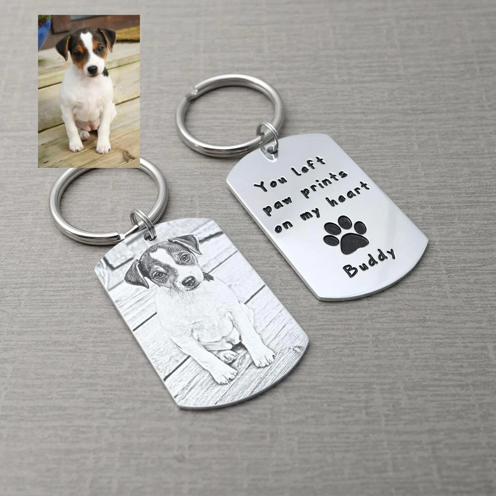 Personalized Photo Engraved Keychain Custom Pet Gifts